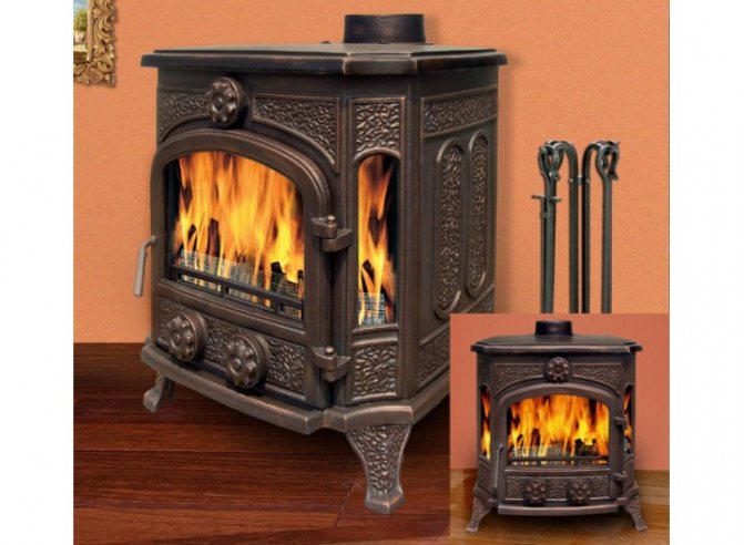 - Дълго изгаряща чугунена печка за камина.