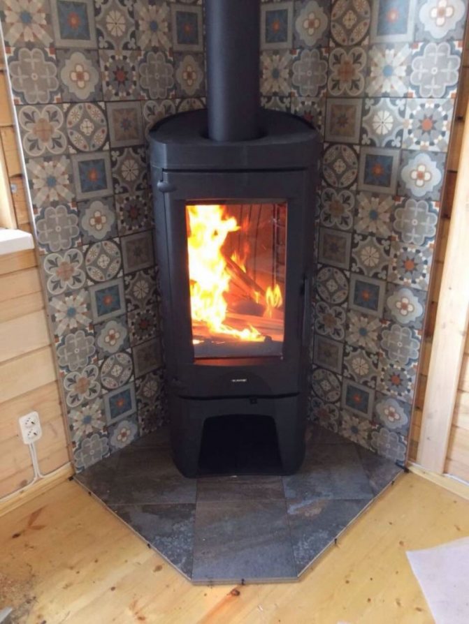 Печката е свързана с комина с помощта на специален изход за тръба.