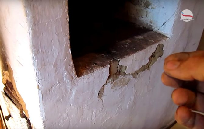 Напукването на зидарията на пещта е знак за необходимостта от ремонт.