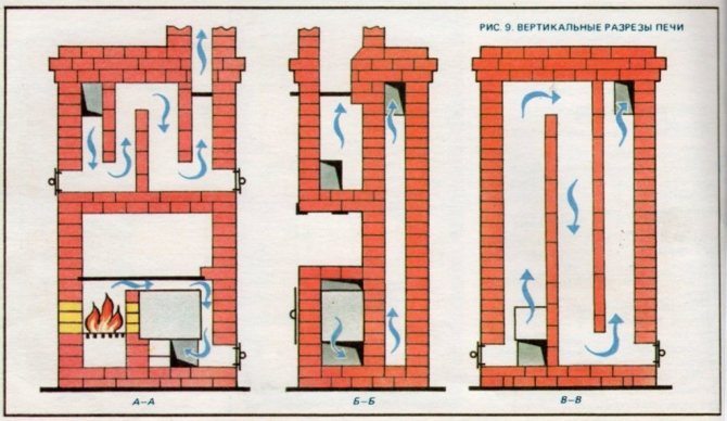 Схема на устройството и зидария на тухлена фурна с отворена печка.