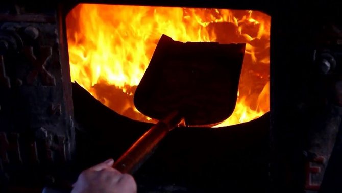 - Когато първият слой гориво напълно погълне пламъка, добавете останалите въглища към горната граница на вратата. Предварително се препоръчва леко разбъркване на горящите въглища.