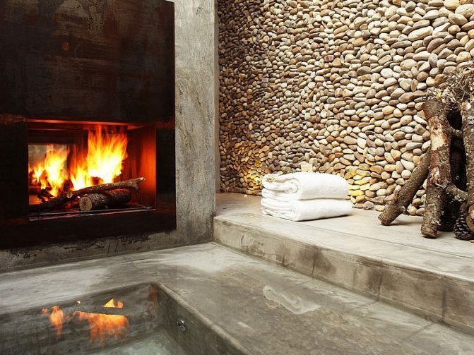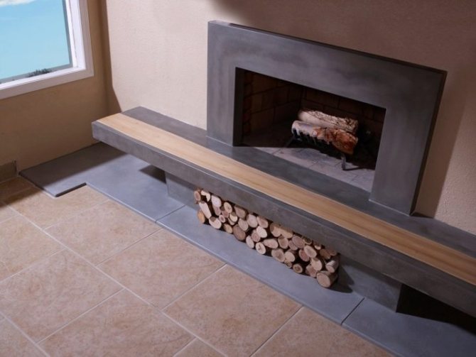 Бетонното огнище визуално се затопля, ако наблизо има дървени повърхности