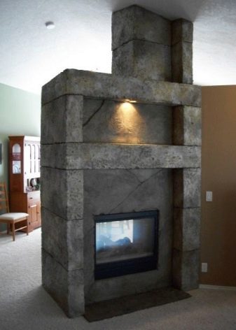 Производителите произвеждат плочки и пръстени, които се сглобяват в съответствие с инструкциите в един продукт. Тъй като бетонната камина е доста масивна, нереалистично е да я транспортирате на едно парче. Модулният дизайн ви позволява бързо да сглобите устройство, което ще има същите свойства като класическата камина на дърва.