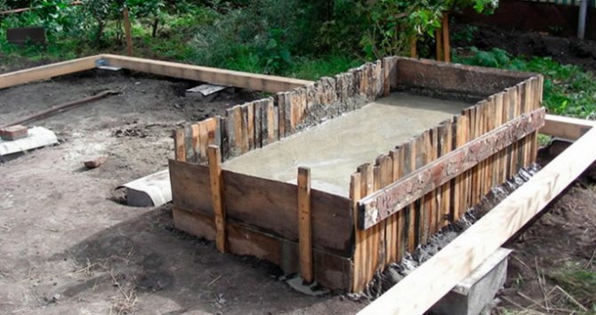 За надземната част на основата е монтиран кофраж с необходимия размер, страните му трябва да бъдат строго вертикални. Освен това пълненето продължава на слоеве до желаната височина, основният хоризонт се проверява с нивото на сградата.