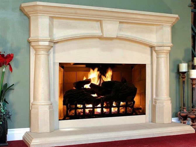За производството на портал за камина се използва специална трайна бетонова смес, например бетон от фибростъкло - материал, подсилен с фибростъкло. Този материал е способен да издържа на големи натоварвания, но в същото време е лек и икономичен.