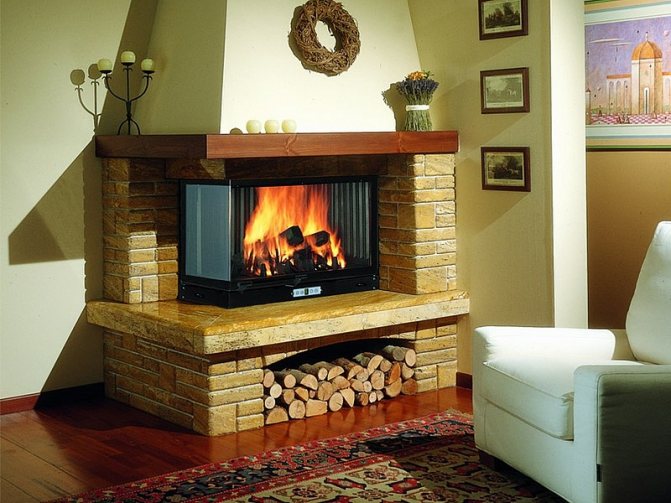 | 1 | Ъглова | Те са монтирани в един от ъглите на стаята. Камината е разположена по диагонал. Димната камера е подредена с наклонени стени, коминът е монтиран вътре в огнеупорната стена. Отоплява две стаи наведнъж: в която се намира и се намира зад стената, до камината. |