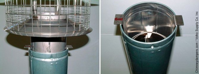 Отворите в главата на комина и дефлектор с механична турбина служат за увеличаване на тягата в канала