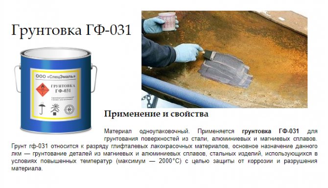 Използва се като основа за бои и лакове като PF, GF, EF, FL и други подобни, но може да се използва и като независимо покритие. Произвежда се главно по ГОСТ 25129-82 в червено-кафеникав цвят или според ТУ в светлосиви тонове.
