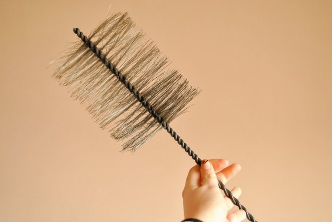 Важно! За почистване на металната тръба на комина е забранено използването на четки и четки върху метална основа, тъй като те могат да повредят тръбата, оставяйки драскотини по повърхността ѝ.Използвайте само найлонова или пластмасова четка от смола. Можете да го купите в магазина или да го направите сами.