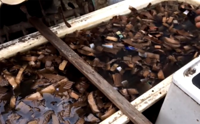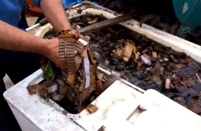Картонът се нарязва на ленти и се накисва във вода за поне един ден и половина