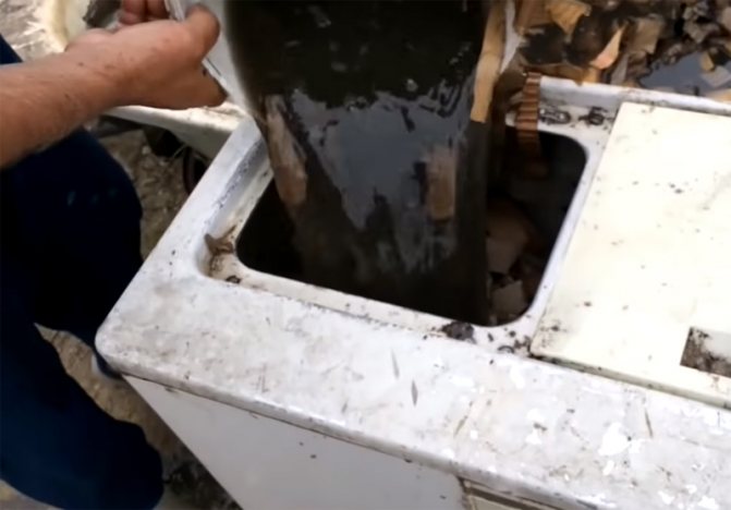 Напоеният картон се зарежда в отделението за измиване малко повече от половината от контейнера. Защо точно в пералнята? Това е идеалният шредер за напоен картон. В края на краищата, за да може да се смеси с въглищен прах, е необходимо картонът да се приведе в кашисто състояние и старата перална машина се справя перфектно с тази задача.