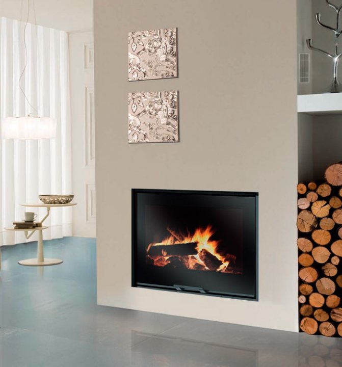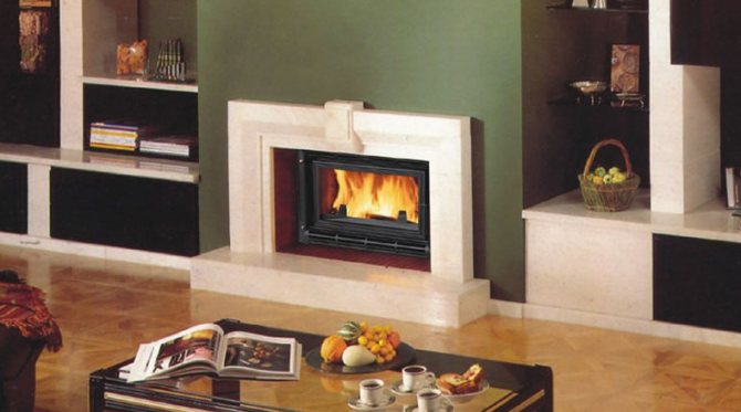 - Касетите за печки за камини могат да се монтират в открито огнище. Такива модели се характеризират с ниска ефективност и са предназначени за отопление на помещения с малка площ;