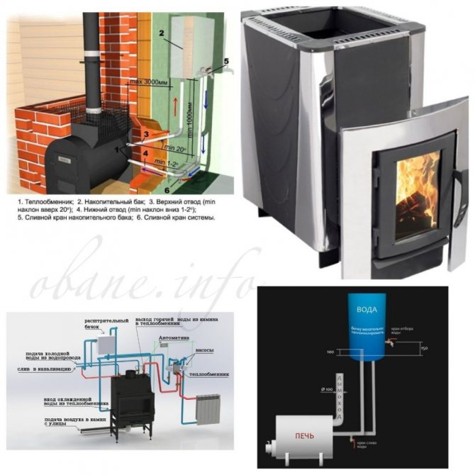 Ако печката е в стая за почивка, тогава, когато изгори през студения сезон, топлината ще се предава в стаята по естествен път. Ако топлината от печката не е достатъчна, тогава в стаята е монтиран радиатор. Системата е оборудвана с разпределителен колектор, от който излизат 2 тръби. Единият води до парната баня, другият до стаята за отдих.