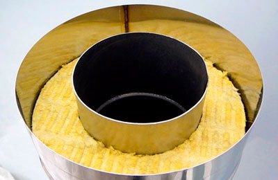 - Корпусът и основната част на камината трябва да имат малка междина. За да се отдели външната кутия от самата тръба, повърхността трябва да бъде изолирана с огнеупорни материали (използва се минерална или базалтова вата);
