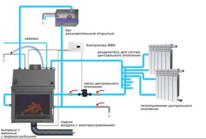 За да не се отвлича вниманието от въпроса за камината, трябва да се отбележи, че камините с топлообменник могат да бъдат включени в отворена и затворена система.