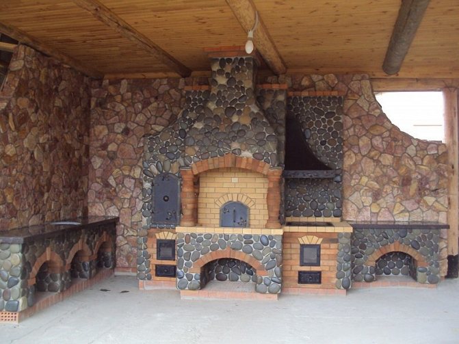 Това е един вид умалена руска печка. Подходящ за всякакви ястия. Има способността да пържи, задушава, пече, задушава и дори пуши. Важно е, че за пушене, ще трябва да оставите няколко въглища в горивната камера, като ги поръсите със сухи дървени стърготини. Добра опция за външна камина за тези, които обичат да готвят на огън.