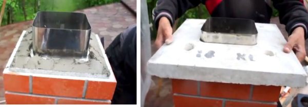 В горната част на комина към лепилото е прикрепен метален лист с отвор