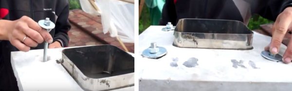 Стъпка 4. Поставете метални щифтове в специални технологични отвори; в бъдеще чадърът на комина ще бъде завинтен към тях.