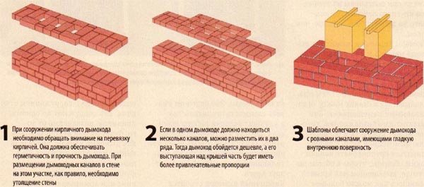 Когато полагате или инсталирате комини, погледът трябва да бъде насочен към тяхната плътност. За да се получат висококачествени комини, трябва да се спазват няколко важни правила. Първо, тухлите се полагат със задължителната превръзка на шевовете, тоест, така че в резултат тухлите от съседните вертикални редове се припокриват от следващите тухли. Зидарията се извършва с хоросан, върху който е положена структурата на стените на носещите стени на къщата, може да бъде циментов или циментово-варов хоросан. Важна е почти идеалната вътрешна повърхност на комина. Въз основа на това подреждането на каналите е придружено от използването на специални шаблони.