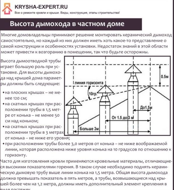 - като е на повече от 3 м от билото, тръбата трябва да достигне оста на 10 градуса от линията на своя хоризонт;