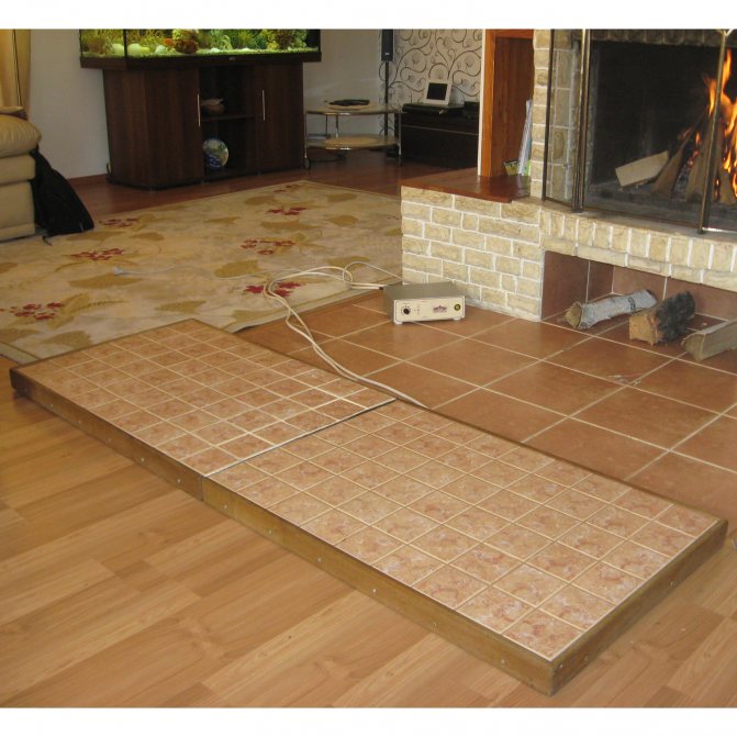- Пред камината на пода трябва да се полага незапалим материал. Това е предпазна мярка в случай, че въглищата изпаднат от горивната камера. Въпреки че модерните печки за градски апартаменти са надеждно устройство, експертите все още вярват, че „Бог пази онези, които внимават“.