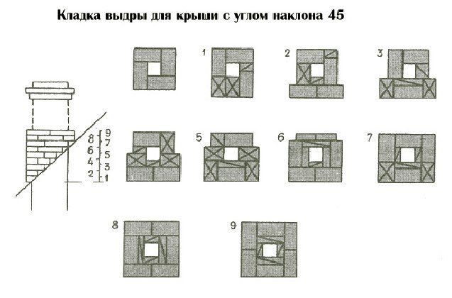 На върха на видрата е разположена врата на комина с връщане на размерите на оригиналния участък. Конструкцията се издига до необходимата височина. Отгоре, с удължение от около четиридесет милиметра, се полага първият ред на главата. Височината му трябва да се увеличи с два тухлени реда.