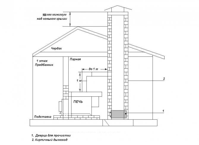 Основната е разстоянието "от дим" до горими конструкции. Тя е равна на 250 мм - това е цялата дължина на керамична масивна тухла.