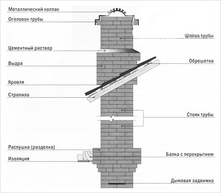 Схема на устройството и съставните елементи на тухлен комин