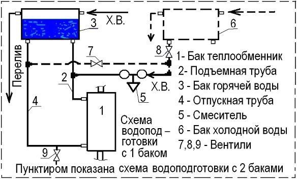Схема за монтаж на топлообменника и резервоара за съхранение.