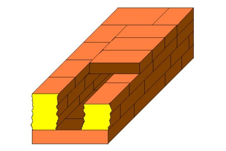 - Едната страна на канала трябва да е с една тухла по-висока. Това ще гарантира, че то е поставено на леглото от долната страна и челно към противоположната страна.