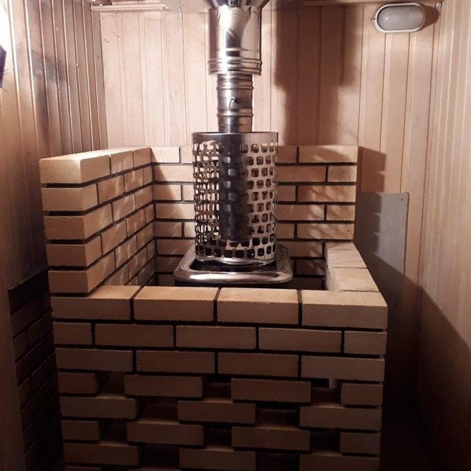 При полагане около метална печка във вана е забранено да се използват обикновени силикатни или червени строителни тухли. Трябва да е огнеупорен. Наличието на кухини не е необходимо, разрешена е декоративна текстура. Смесите служат като стягащо средство: