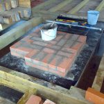 Височината на основата, стърчаща над земната повърхност, е 20 см. Тя се „изважда“ под нивото на пода с помощта на топлоизолационен слой. Поставен е от топлоустойчиви тухли "твърдо". Решението е същият състав, който ще бъде приложен по-късно.