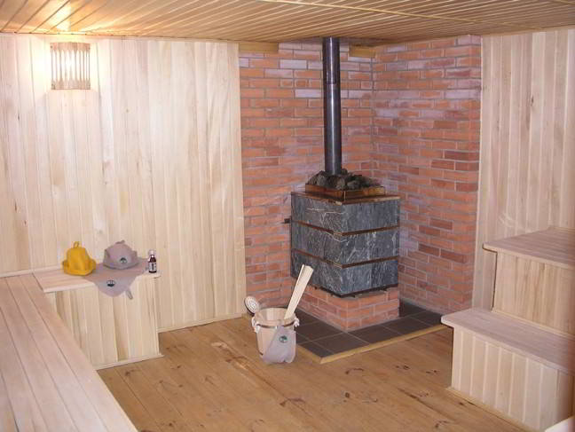 - Разстоянието от дървените стени на помещението (парна баня) и облицованата печка от поне 10-15 см ще осигурят пожарна безопасност.