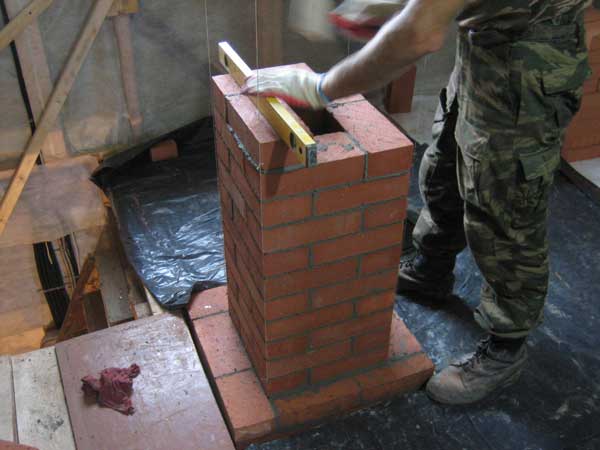 Той е изграден директно върху пещта. Експертите препоръчват да се постави тухлен комин не директно върху гърлото на пещта, а след полагане на стоманобетонна плоча с дупки върху нея. Това устройство ви позволява да ремонтирате печката в бъдеще, без да разглобявате комина.