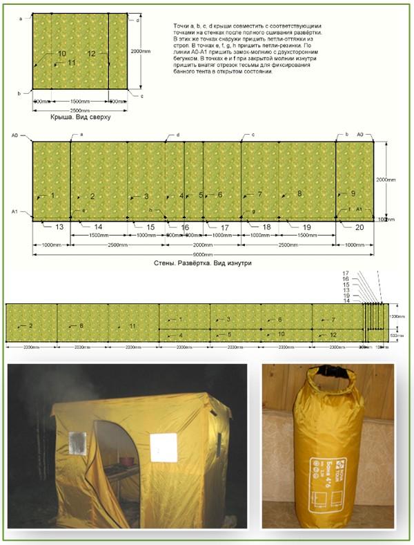В никакъв случай не използвайте съвременни синтетични палатки за изграждането на парна баня, те ще изгорят от всяка малка искра. След първото бягане такъв сенник може да бъде изхвърлен.