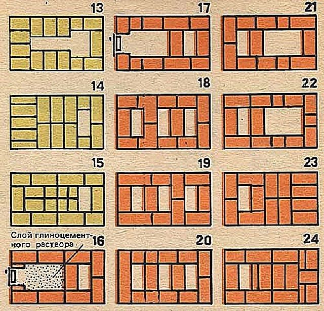 По време на полагането на 5-ти ред се монтира решетка. Започвайки от този ред, до 15-ти, зидарията трябва да се извършва с огнеупорни тухли.