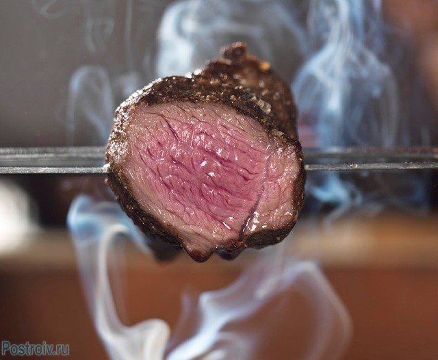 На второ място, при барбекюто нагряването на продукта е по-меко, тъй като по-голямата част от топлината отива за нагряване на въглищата, метал и благодарение на решетката, студен въздух тече около и охлажда вече изпържената повърхност. За съжаление само готвачът може напълно да обясни разликата, но накратко, при готвене на метална печка за барбекю, мазнината и влагата остават вътре в продукта и не се изпаряват с поток горещ газ, което прави ястието по-сочно и по-богато на вкус . Ако имате барбекю, няма да е трудно да приготвите сочна пържола и за да получите същия резултат на скарата, ще трябва да увиете детайла в метално фолио.