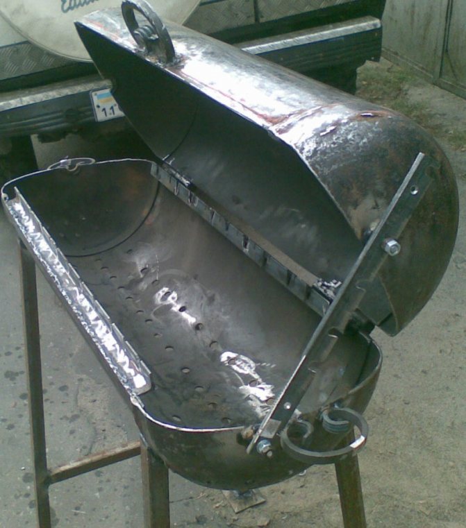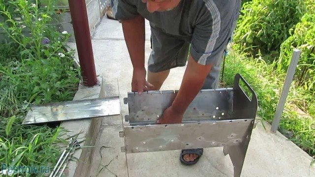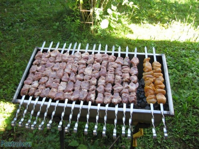 Често в крайградския влак можете да срещнете тълпа развълнувани хора, които очевидно са се събрали на пикник. Това може да се идентифицира по тежките им раници и чанти, както и преносимият им метален калъф за барбекю. Този битов предмет обикновено се прави самостоятелно. Размерите на такова барбекю със собствените си ръце, изработени от метал, са направени по такъв начин, че да могат лесно да се носят в сгъваема форма. Стационарните конструкции, които са инсталирани в градината на частна къща или лятна вила, могат да имат различни размери, които позволяват едновременното приготвяне на барбекю на 4 - 16 шишчета.