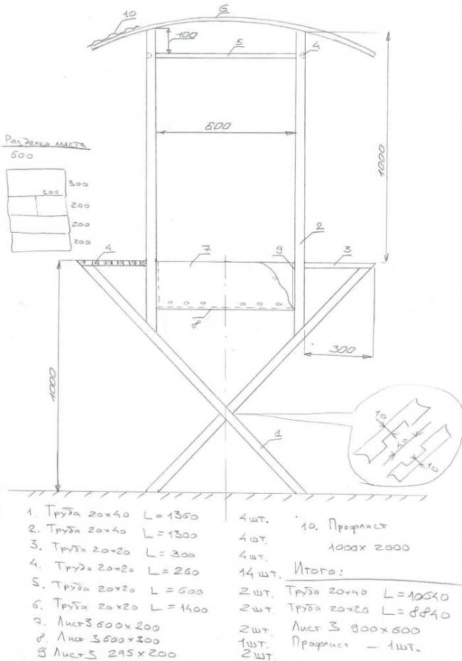 Самата скара е поръчана като за първия вариант, тоест от лист 600 * 900. Дебелина 4 mm (виж акаунта)
