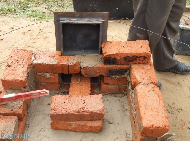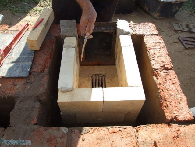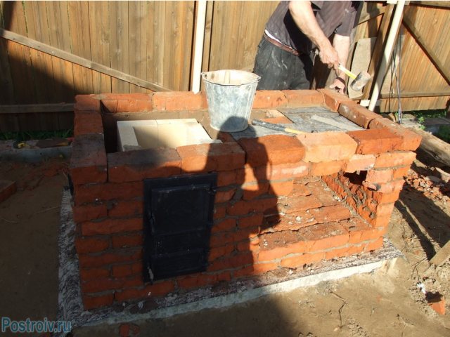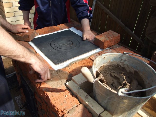 - Изберете място за печката - на открито място или под навес на беседка. Съставът на разтвора зависи от това. За първия вариант ще е необходим топлоустойчив цимент, а за втория ще е подходящ глинен разтвор.