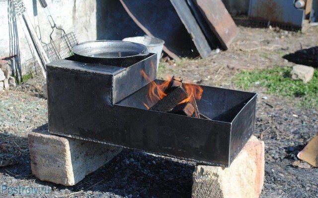 Универсалният казан-мангал се състои от малка основа и метална кутия от метални листове. Основните му предимства са прост дизайн и възможност за производство на преносимо барбекю.