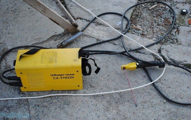 Сега започва процесът на заваряване на метал. Вземаме заварчик, в моя случай най-простият китайски заварчик, който работи вярно повече от дузина години, и започваме да заваряваме шевовете с електроди - 3 мм. Ние също готвим втората страна на барбекюто, докато огледалото отсреща. В крайна сметка получихме две такива части. Все още не е свързан.