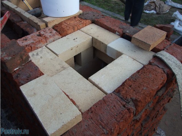 - Зидарията на камината продължава до 21-ви ред. Освен това, тя е покрита по същия начин като ниша под пепелника, само полагането се извършва в половината от тухла - месар.