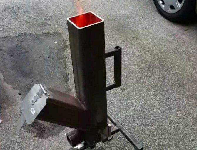 - Към хоризонталната тръба е прикрепен страничен изход, който служи като пепел.