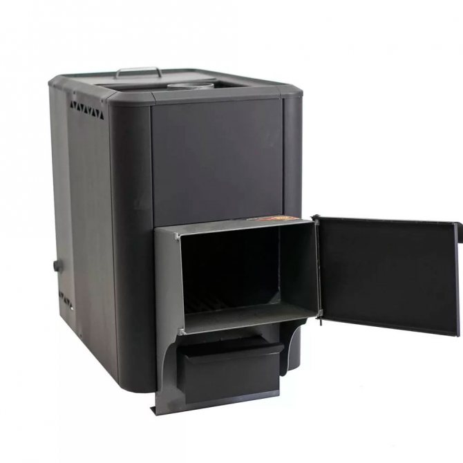 Печката за сауна се различава от обичайната печка-печка по наличието на контейнер за камъни и камина, облицована с шамотни тухли.