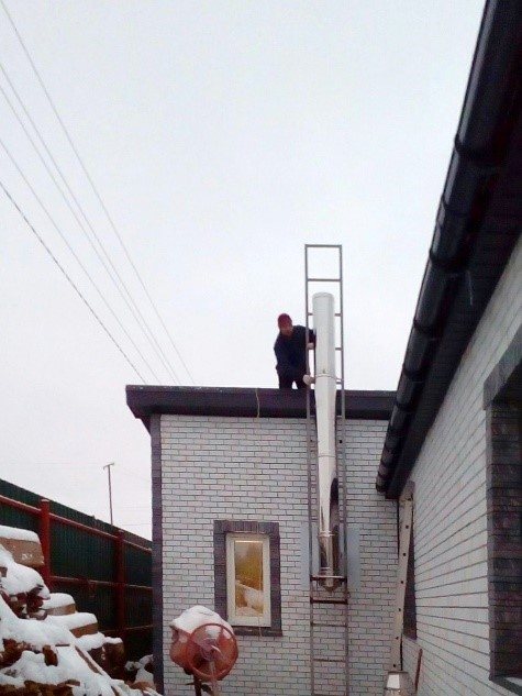 - Монтажът на комина трябва да се извършва в съответствие с всички правила на строителното изкуство, поради което в горната част на тръбата е монтирана глава.
