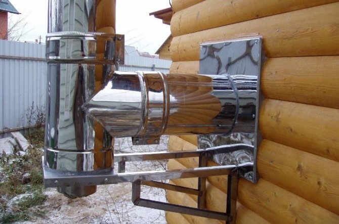 Когато монтирате комин от сандвич тръби или друг материал през стена, трябва да се спазват правилата за пожарна безопасност. Ако е бетон или тухла, тогава ще бъде достатъчно просто да се третира фугата с уплътнител. Много по-трудно е в дървените къщи, където контактът на комина с дървена стена ще доведе до пожар.