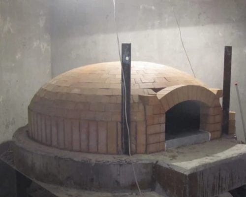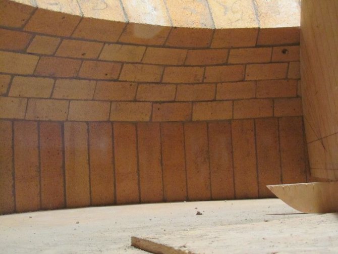 | Входна зидария. Входът е разположен едновременно с изграждането на купола. Блоковете на границата на входа и купола са направени с малка страна 20 мм. Някои ястия трябва да се готвят в затворена фурна и капакът ще опира до тази страна. |