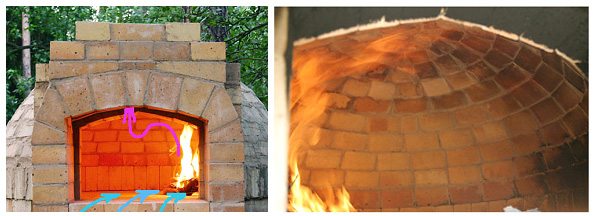 Входът на пещта е направен сводест или полусводен, височината на входа е 0,6 (60%) от височината на купола.Според правилата ширината на входа трябва да бъде равна на радиуса на купола, но понякога се прави малко по-малка, това не влияе на температурните условия.