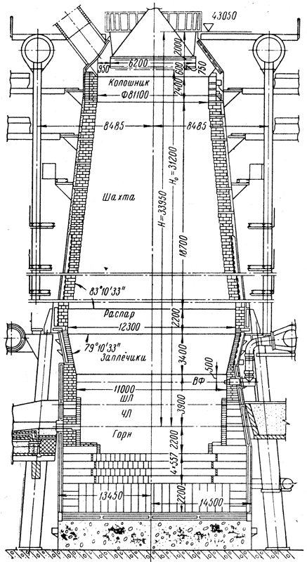 Дизайнът на доменната пещ осигурява непрекъснат процес на преработка на руда, животът на доменната пещ е 100 години, основен ремонт се извършва на всеки 3-12 години.